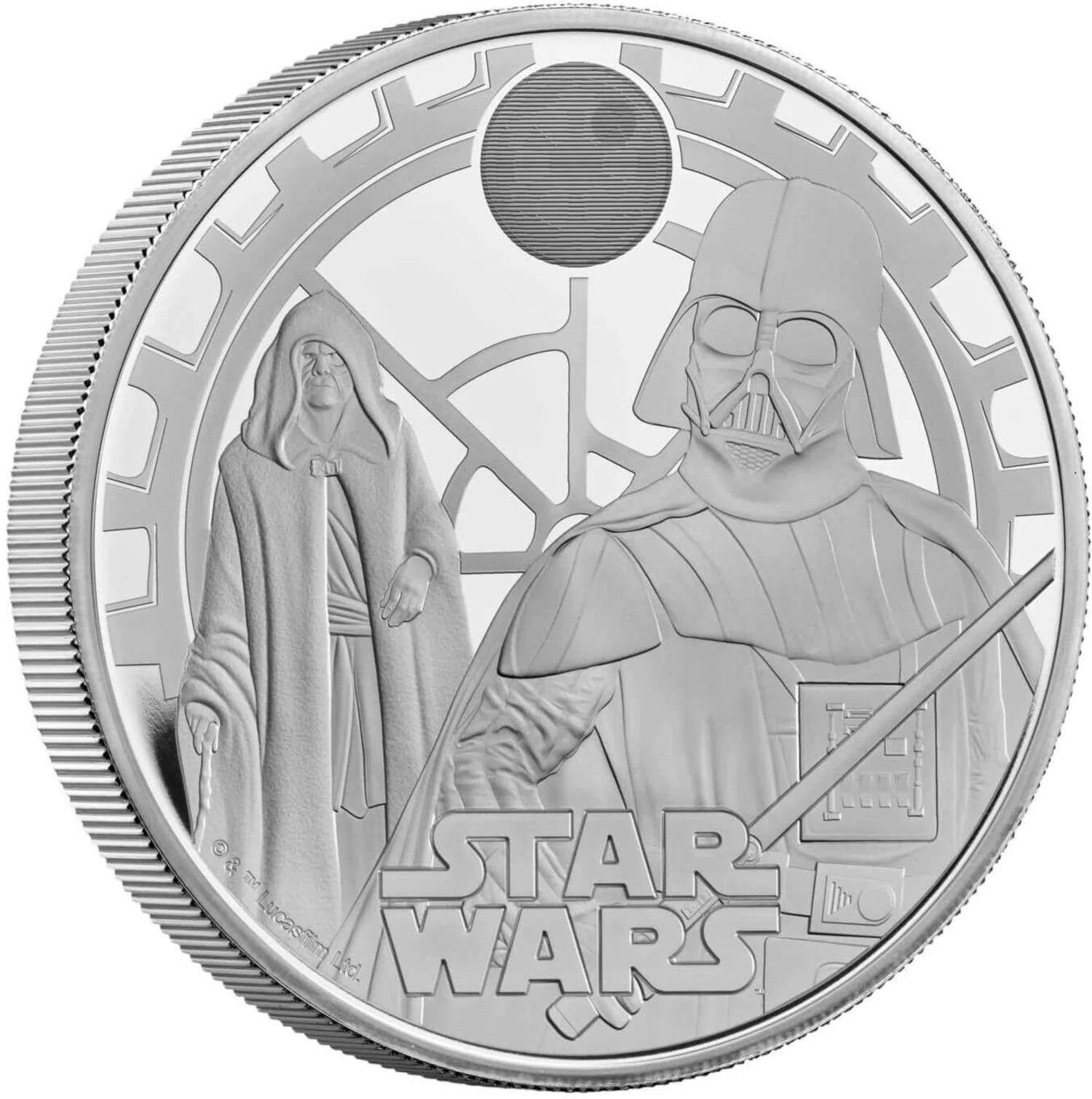 Darth Vader and Emperor Palpatine in hologram style with text below.