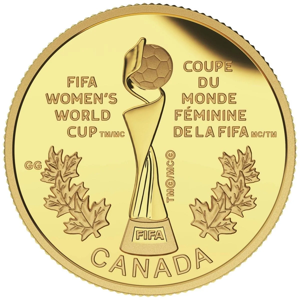 Trophy with flanking maple leaves.
