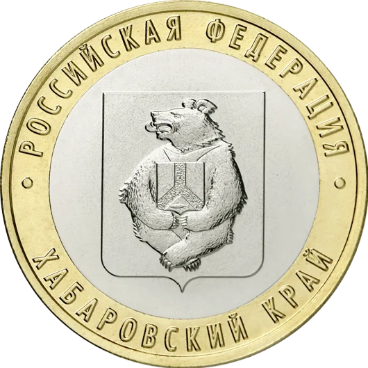 The reverse features the Khabarovsk Territory coat of arms, encircled by the inscriptions "РОССИЙСКАЯ ФЕДЕРАЦИЯ" above and "ХАБАРОВСКИЙ КРАЙ" below.