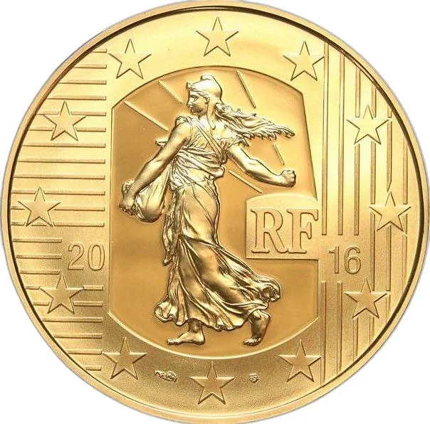 The coin's obverse features Oscar Roty's iconic Semeuse design.