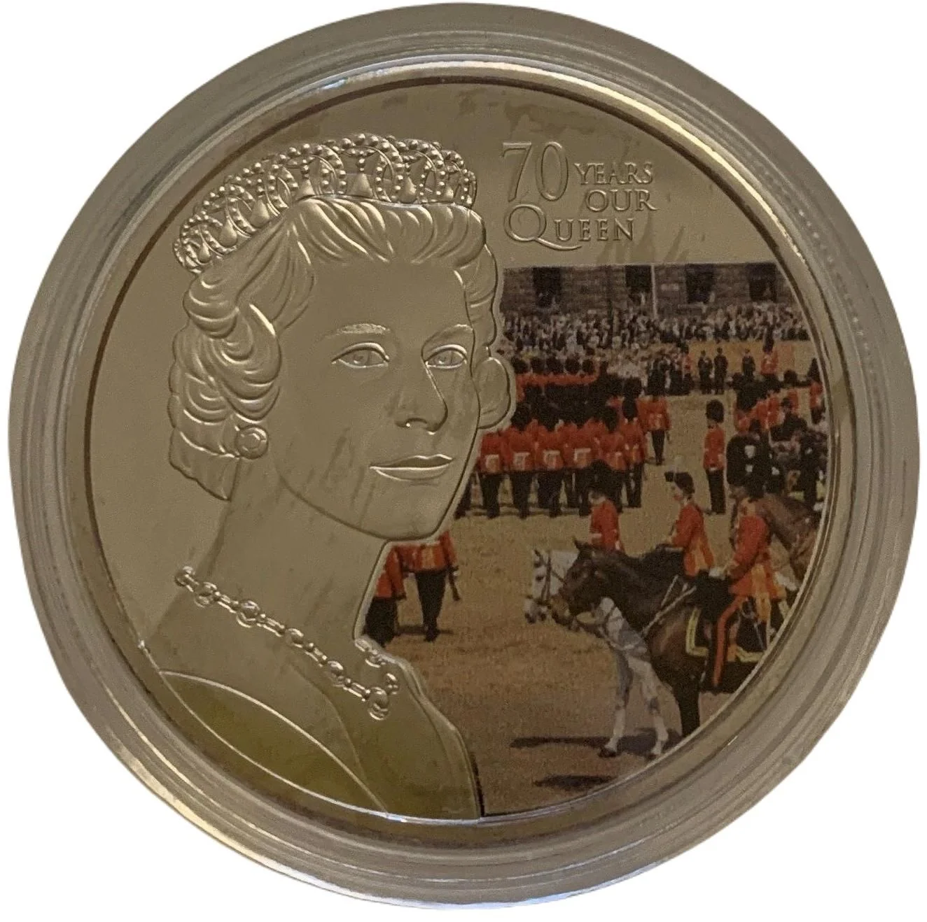 Queen Elizabeth II right-facing bust in George IV State Diadem, legend surrounding, date beneath.