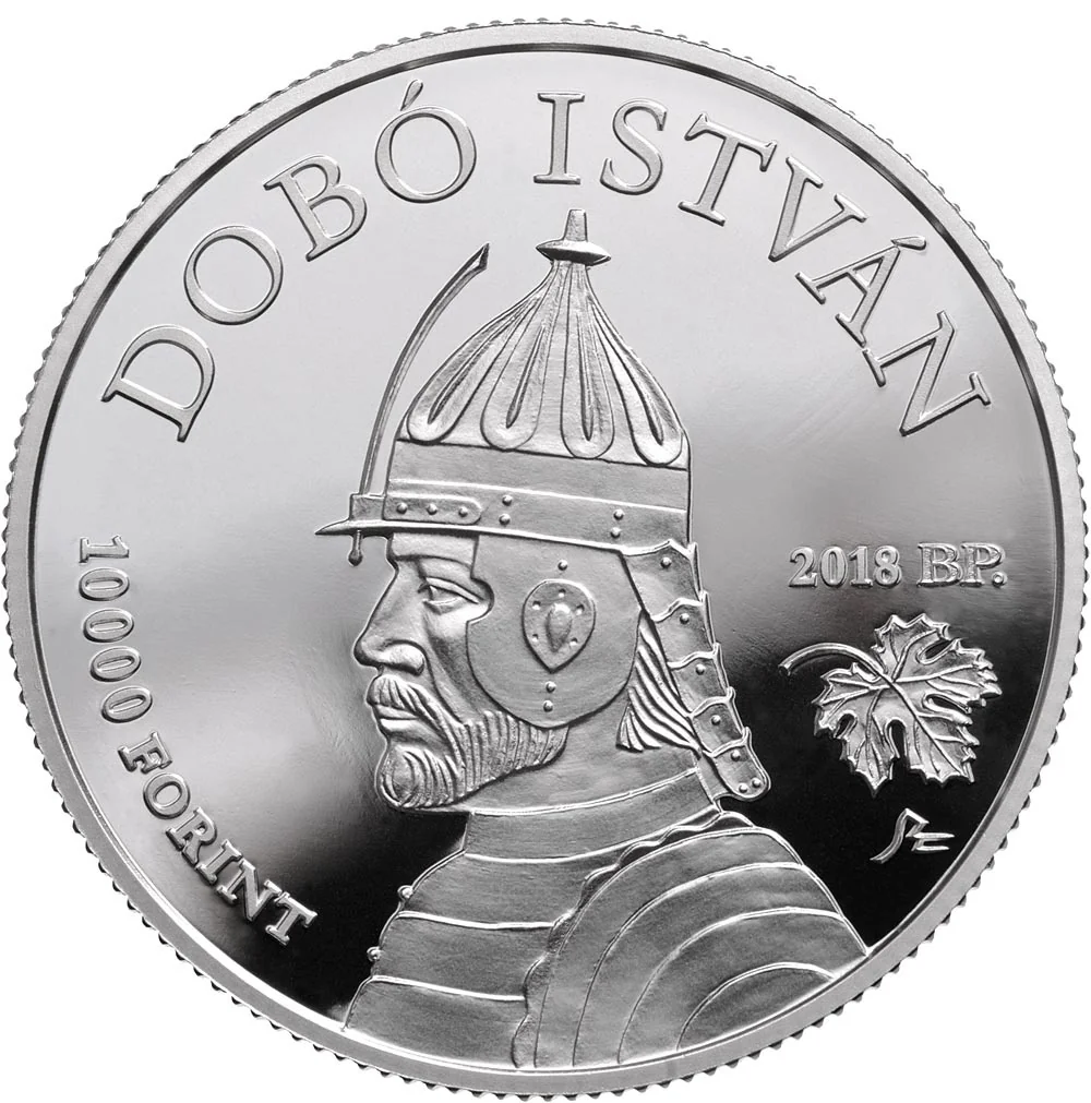 Portrait of István Dobó facing left, with a vine leaf on the right.
