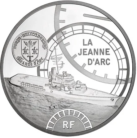 The helicopter carrier La Jeanne d'Arc, bearing Joan of Arc's coat of arms.
