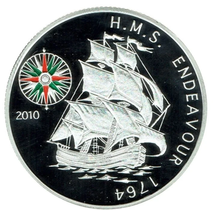 H.M.S. Endeavour compass, featuring red and green coloring.