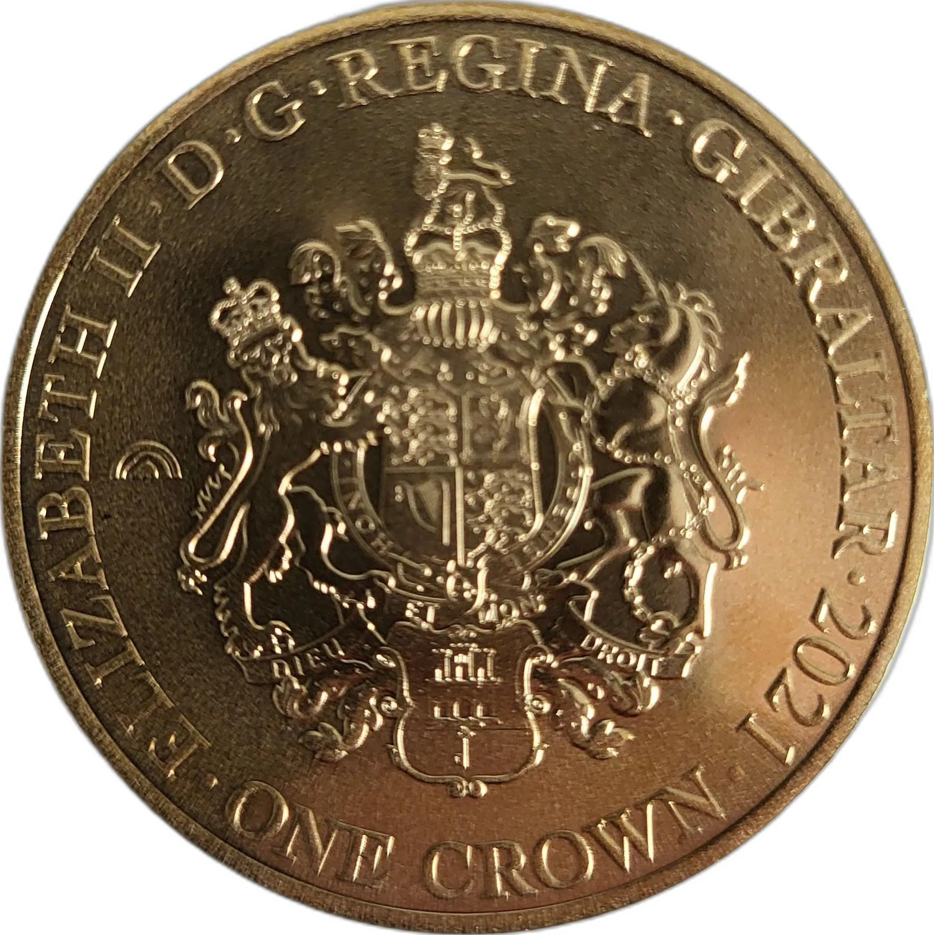 ELIZABETH 11 . D.G . REGINA . GIBRALTAR . 2021 . ONE CROWN