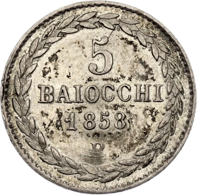 In 1858, the Papal States faced a complex and strained monetary situation, characteristic of the pre-unification Italian peninsula. The state lacked a unified, modern currency system, instead operating with a circulation of multiple coin types. The official standard was the Papal Scudo, divided into 100 Baiocchi, with the Scudo itself valued at 5 French francs due to the influence of the Latin Monetary Union. However, in practice, a bewildering variety of coins circulated simultaneously, including older local issues, coins from neighboring Italian states like Tuscany and the Two Sicilies, and foreign currencies, particularly French and Austrian coins. This proliferation created chronic confusion in commerce and facilitated widespread counterfeiting.