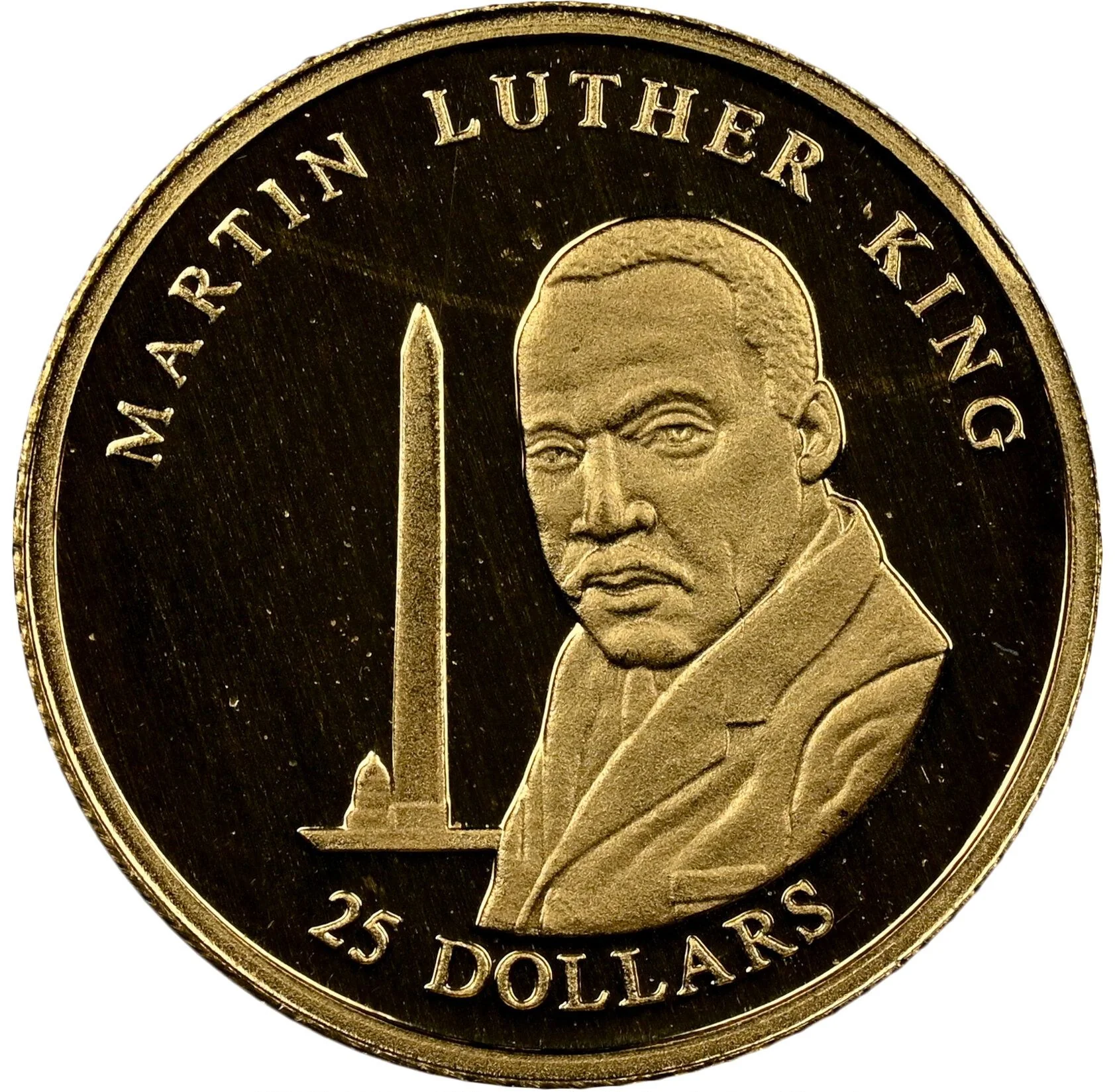 Martin Luther King bust beside an obelisk.