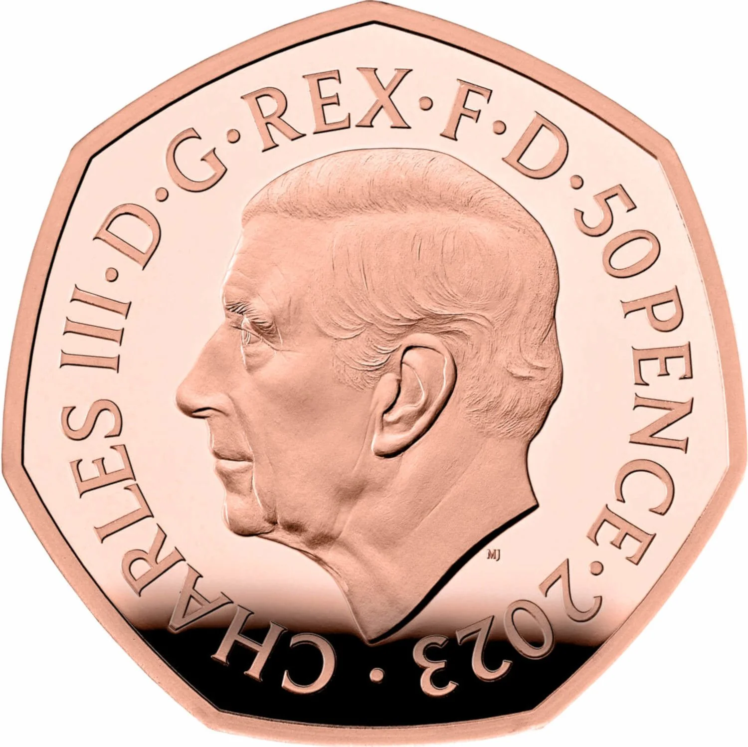 Charles III, by the Grace of God, King, Defender of the Faith, 50 Pence, 2023.