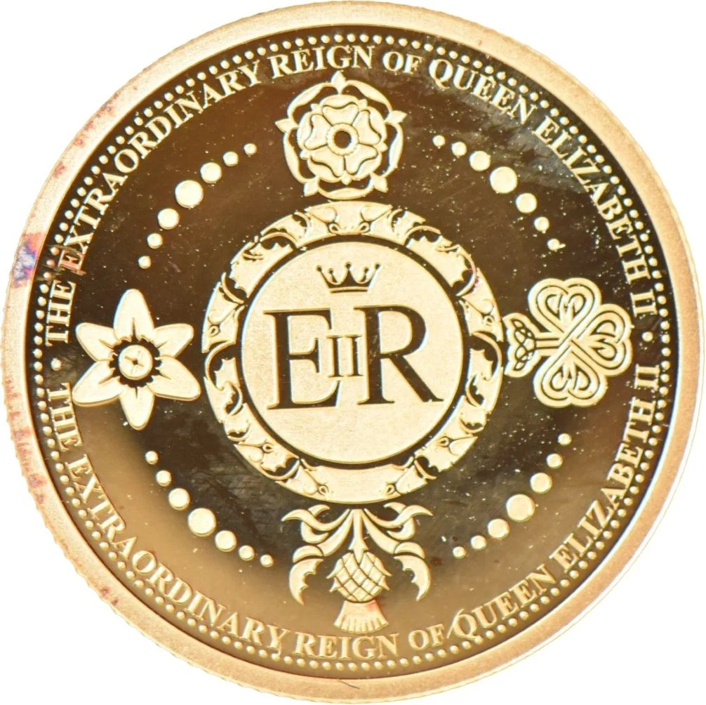 The official EIIR cypher, featuring the Tudor Rose, Welsh Daffodil, Irish Shamrock, and Scottish Thistle.