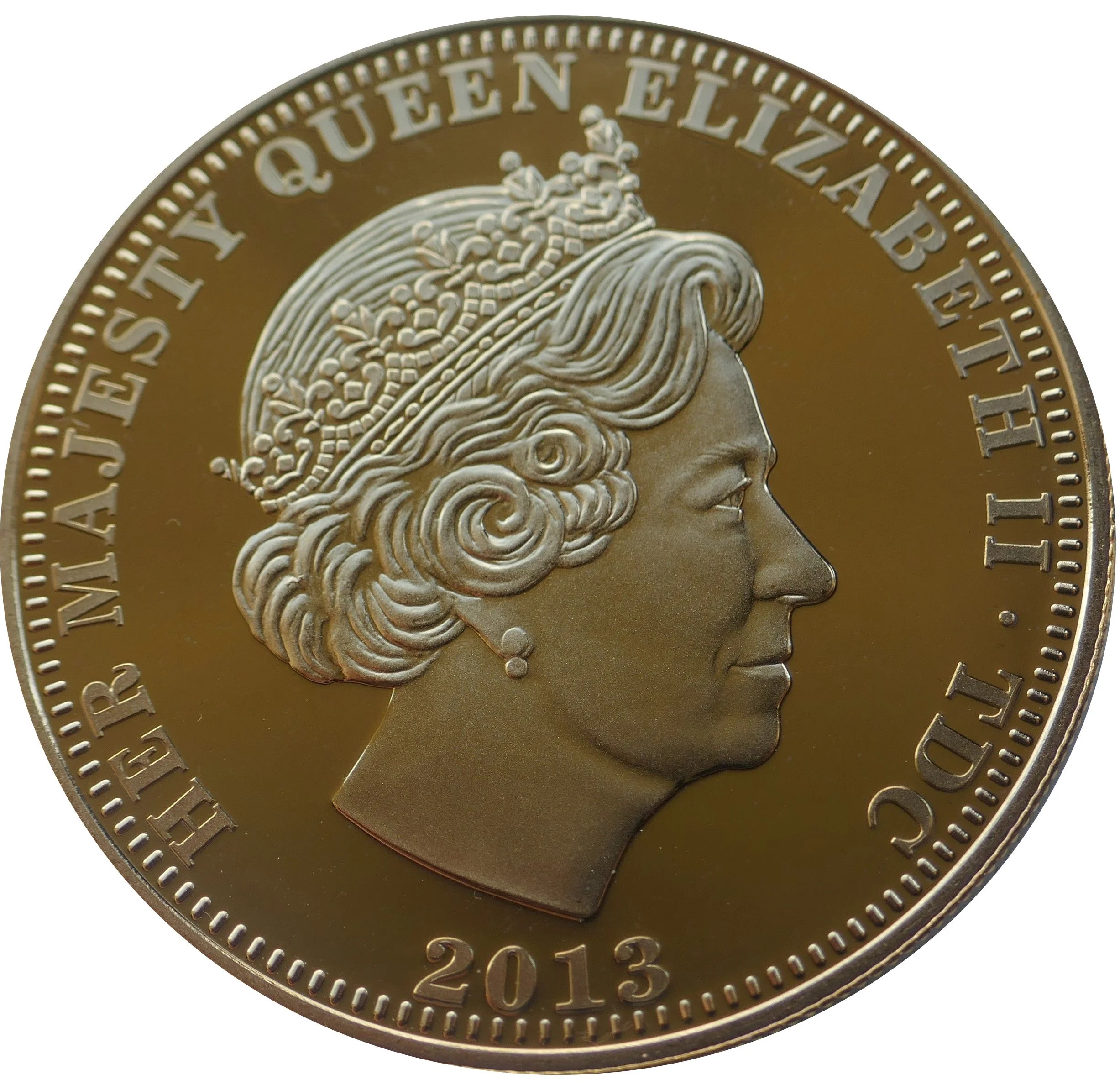 Queen Elizabeth II portrait above date.
