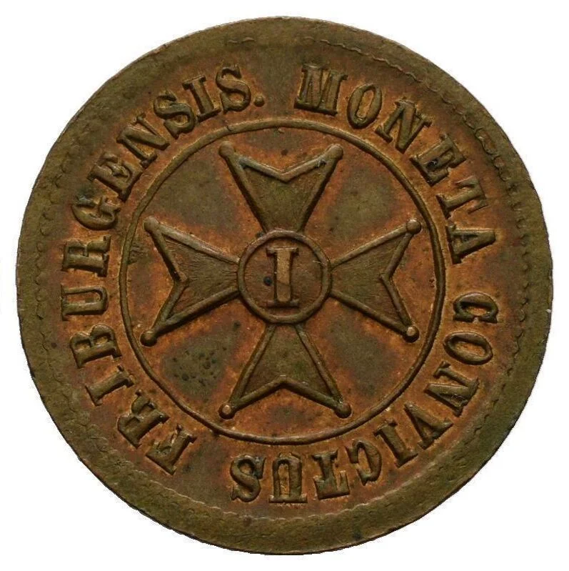 Fribourg Jesuit College encircled, with the radiant "IHS" monogram above. Legends within a grenetis circle. Two stars below.