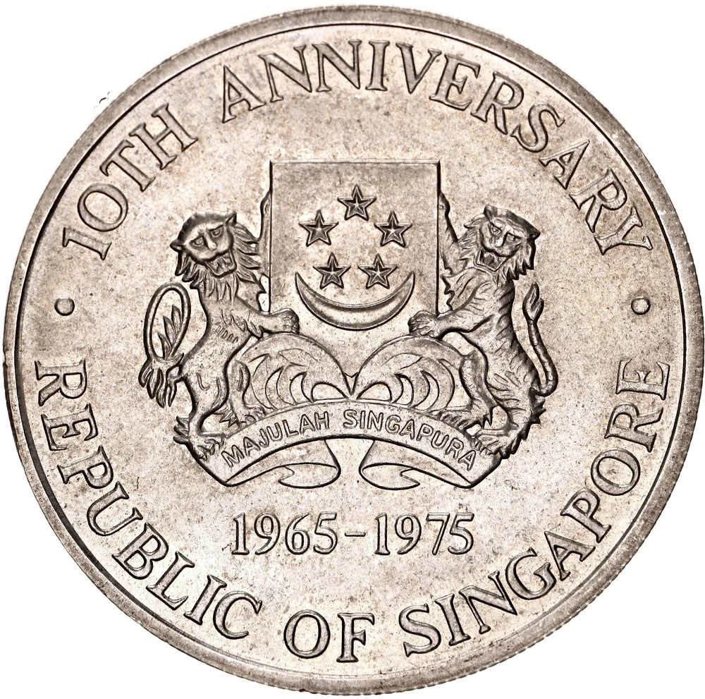 Singapore Coat of Arms, supporters flanking, independence years below, legend encircling.