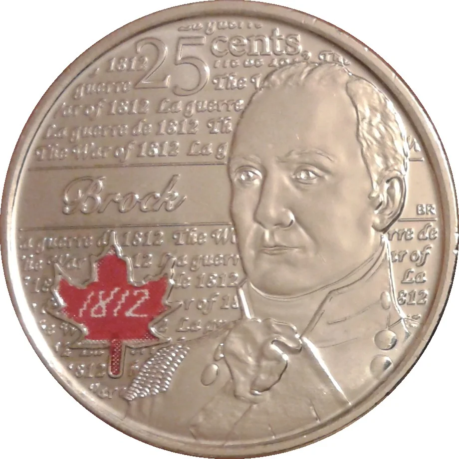 Effigy of Brock, coloured maple leaf left.