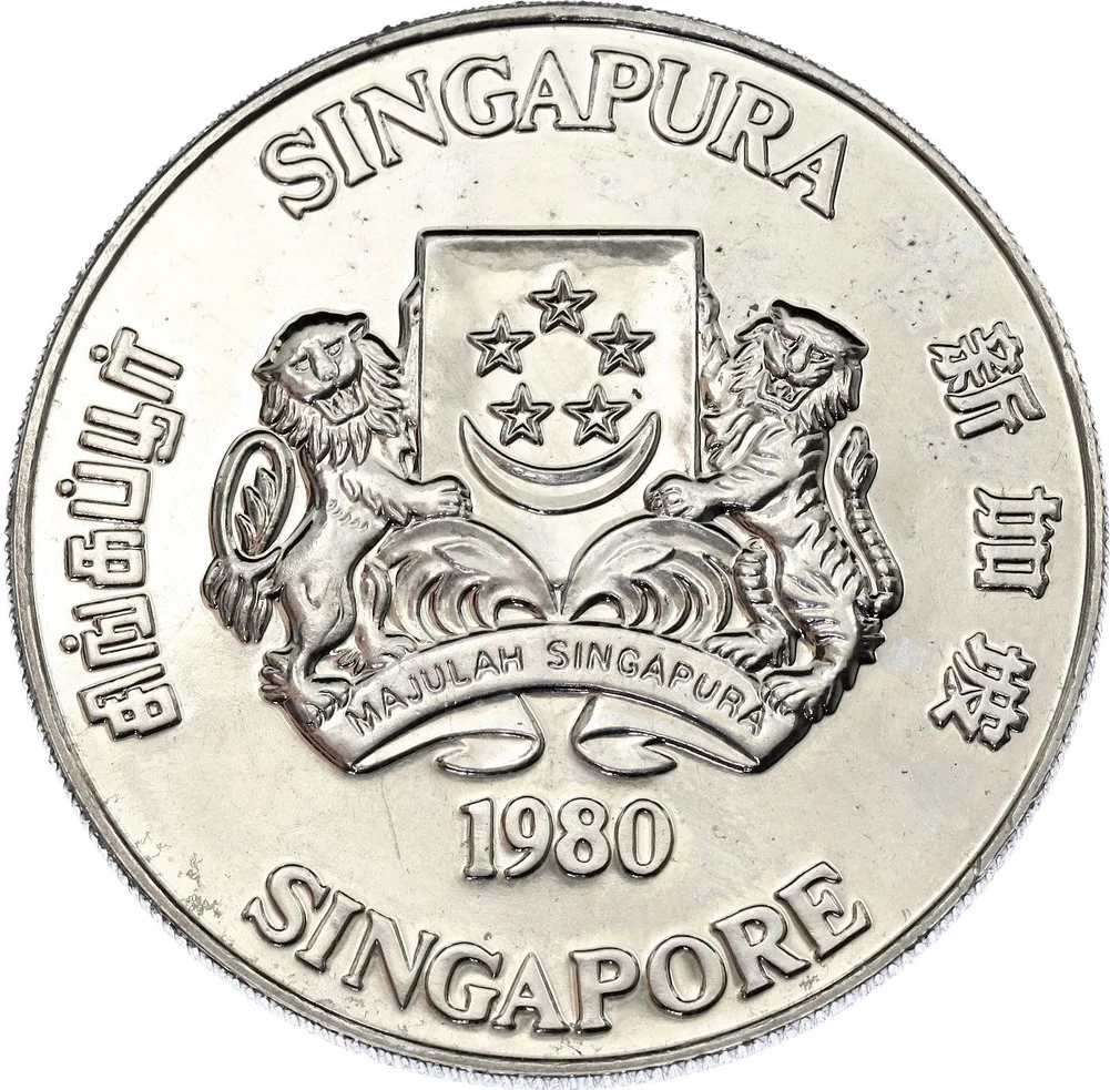 Singapore's coat of arms, encircled by "SINGAPORE" in the nation's four major languages, with the issue year beneath.