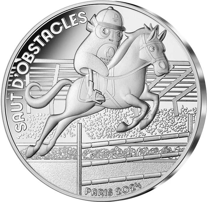 "10 EURO" flanked by laurel and oak branches, encircled by "RÉPUBLIQUE FRANÇAISE," three hexagons, and the issue year.