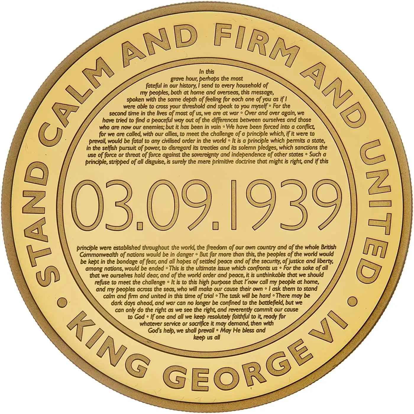 Description: King George VI's full speech. Date centered: 03.09.1939. Border text: STAND CALM AND FIRM AND UNITED • KING GEORGE VI