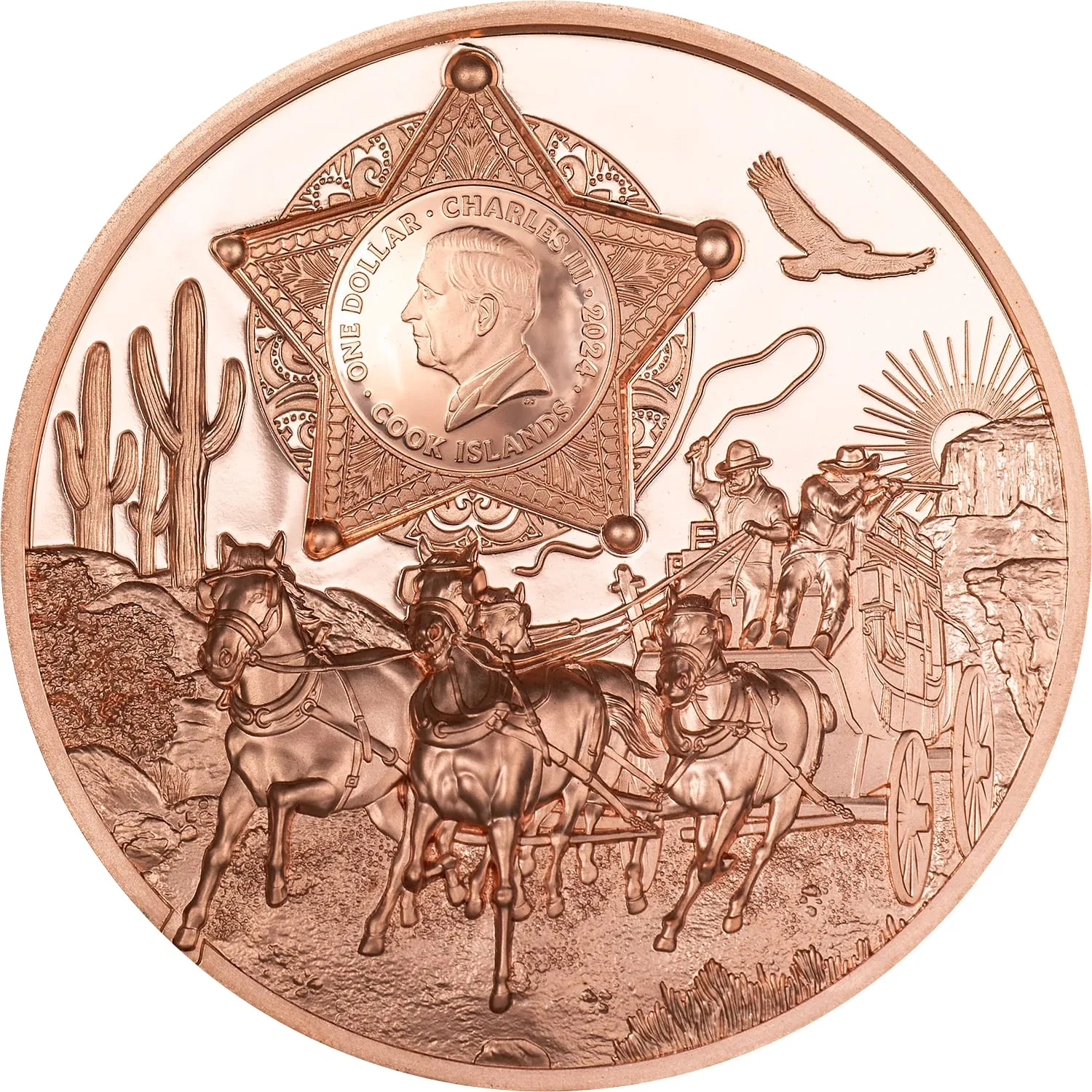 King Charles III's effigy on a sheriff's star and wagon.