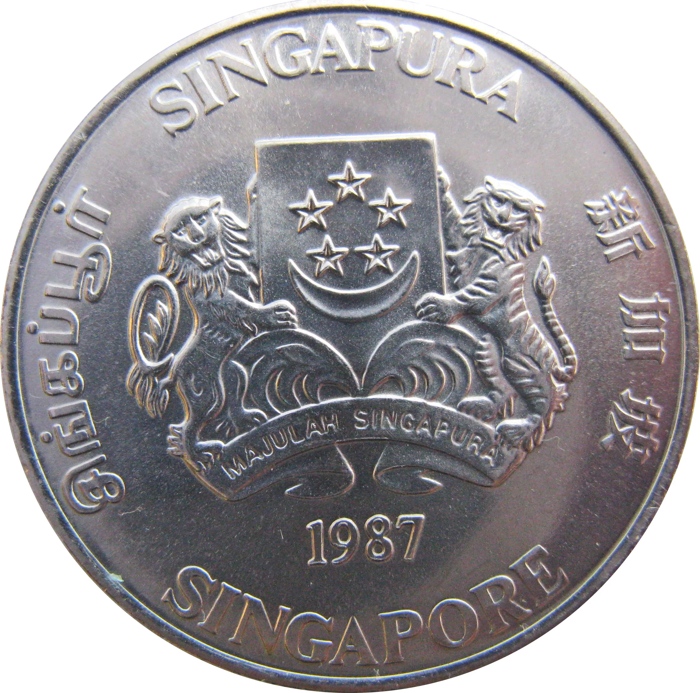 Emblem with date; 'Singapore' encircles it in English, Tamil, Chinese, and Malay.