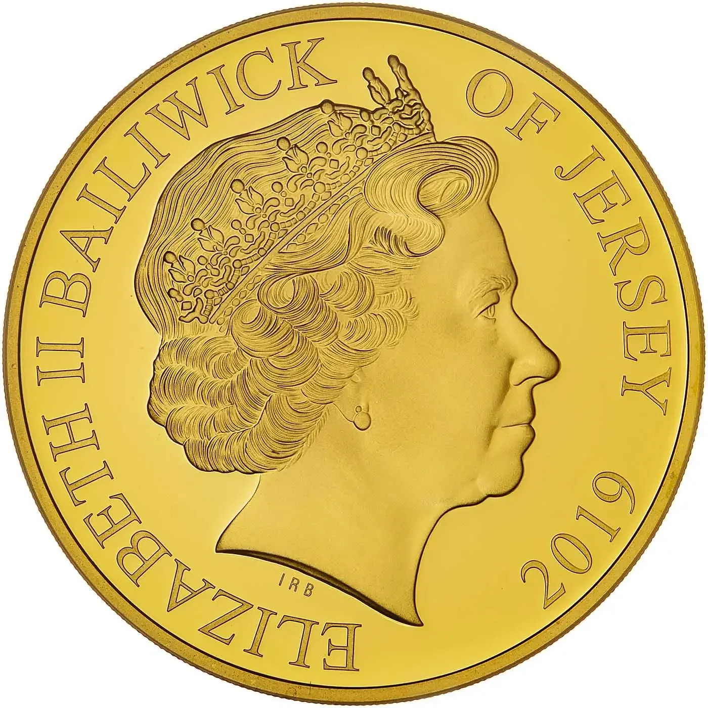 Fourth portrait of Elizabeth II facing right, wearing the Girls of Great Britain and Ireland Tiara, with legend and date 2019.