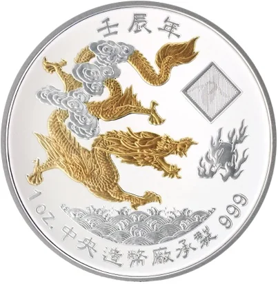 A dragon. Tilting the coin reveals Taiwan's outline and Mount Yu in a rhombic latent image.