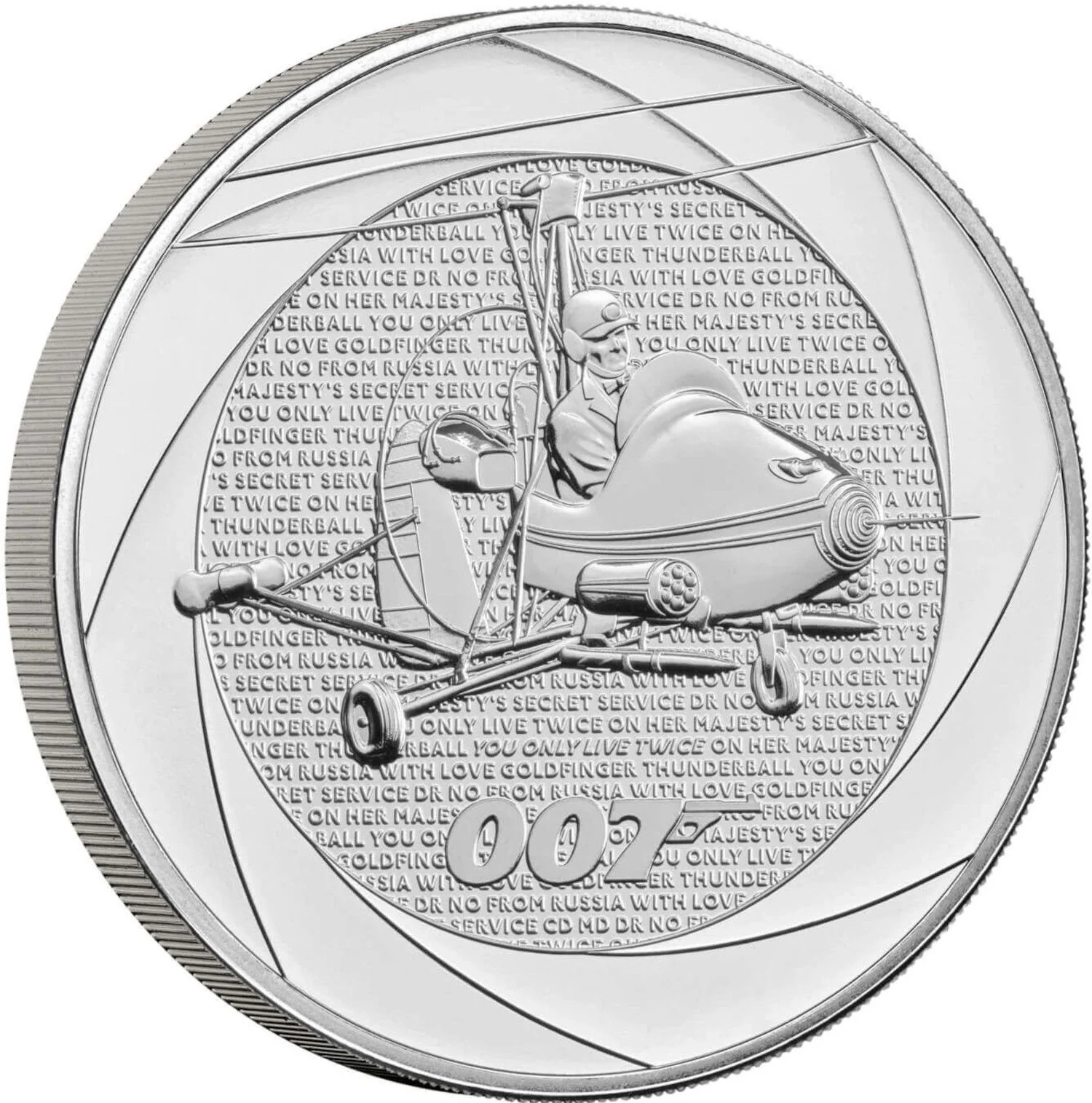 James Bond flying a microlight in 'You Only Live Twice', set against 1960s Bond titles and '007'.