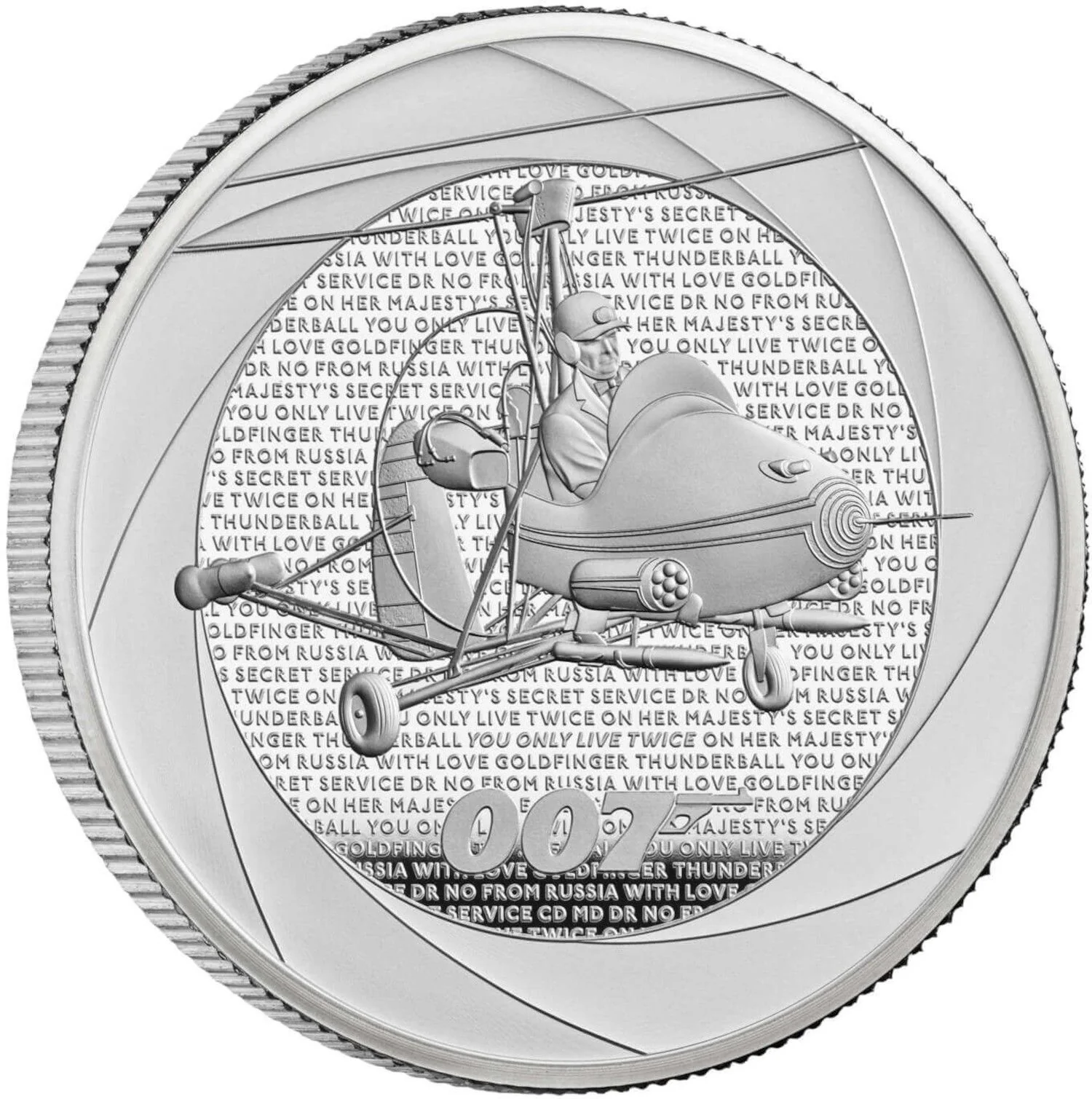 James Bond flying a microlight in 'You Only Live Twice', set against 1960s Bond titles and '007'.