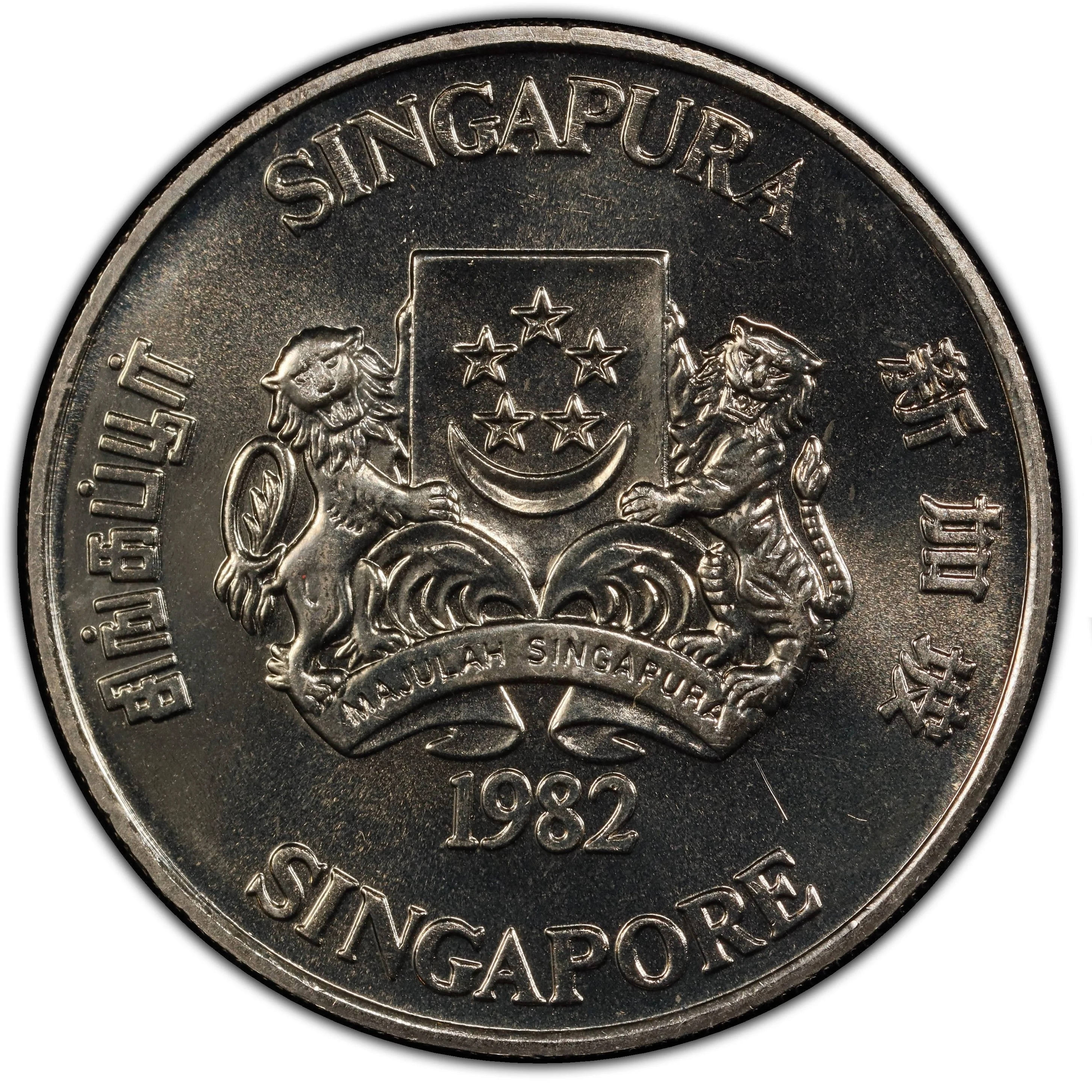 The Singapore Arms, supported and encircled by "SINGAPORE" in four languages, with the year-date beneath.