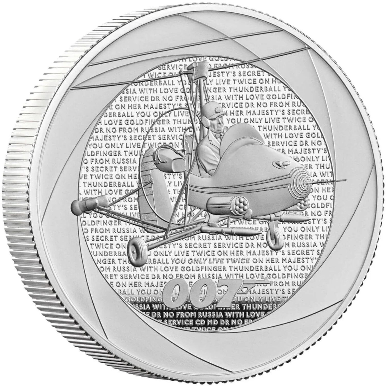 James Bond flying a microlight in 'You Only Live Twice', set against 1960s Bond titles and '007'.