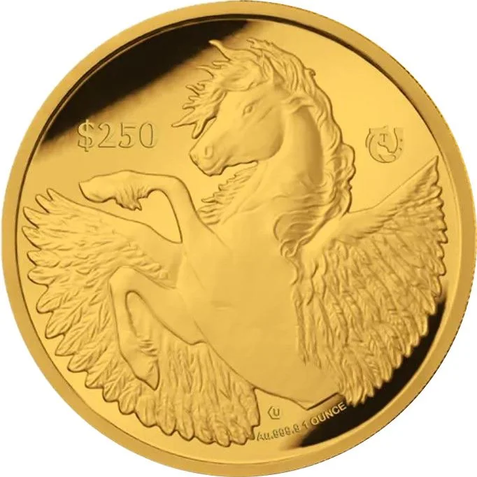 Pegasus rearing, wings spread, denomination left, privy mark upper right.