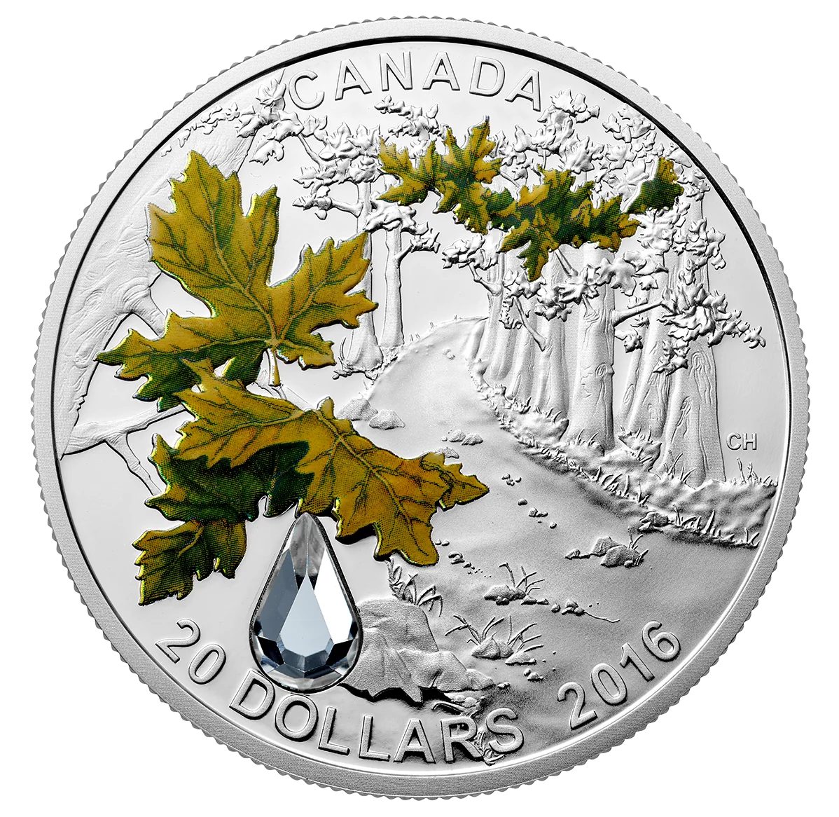 Raindrop-shaped Swarovski crystal in Bigleaf Maple leaf colors.