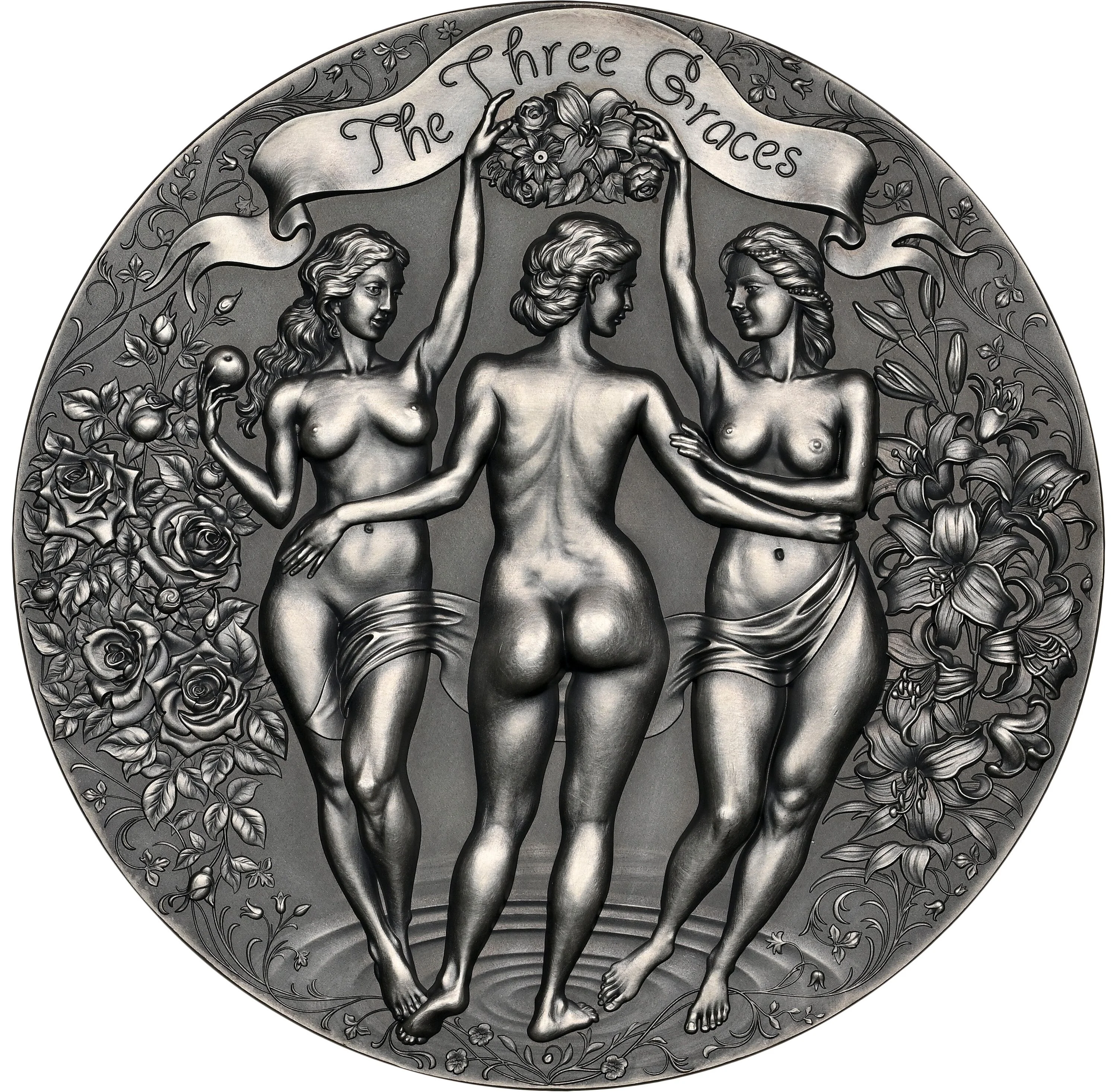 Three Graces nude amid flowers.