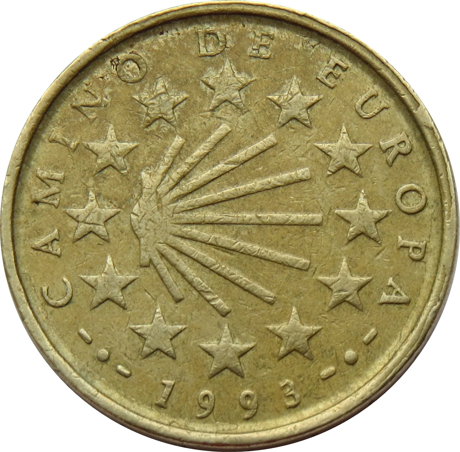 Council of Europe's Camino de Santiago emblem encircled by the twelve EU stars.
