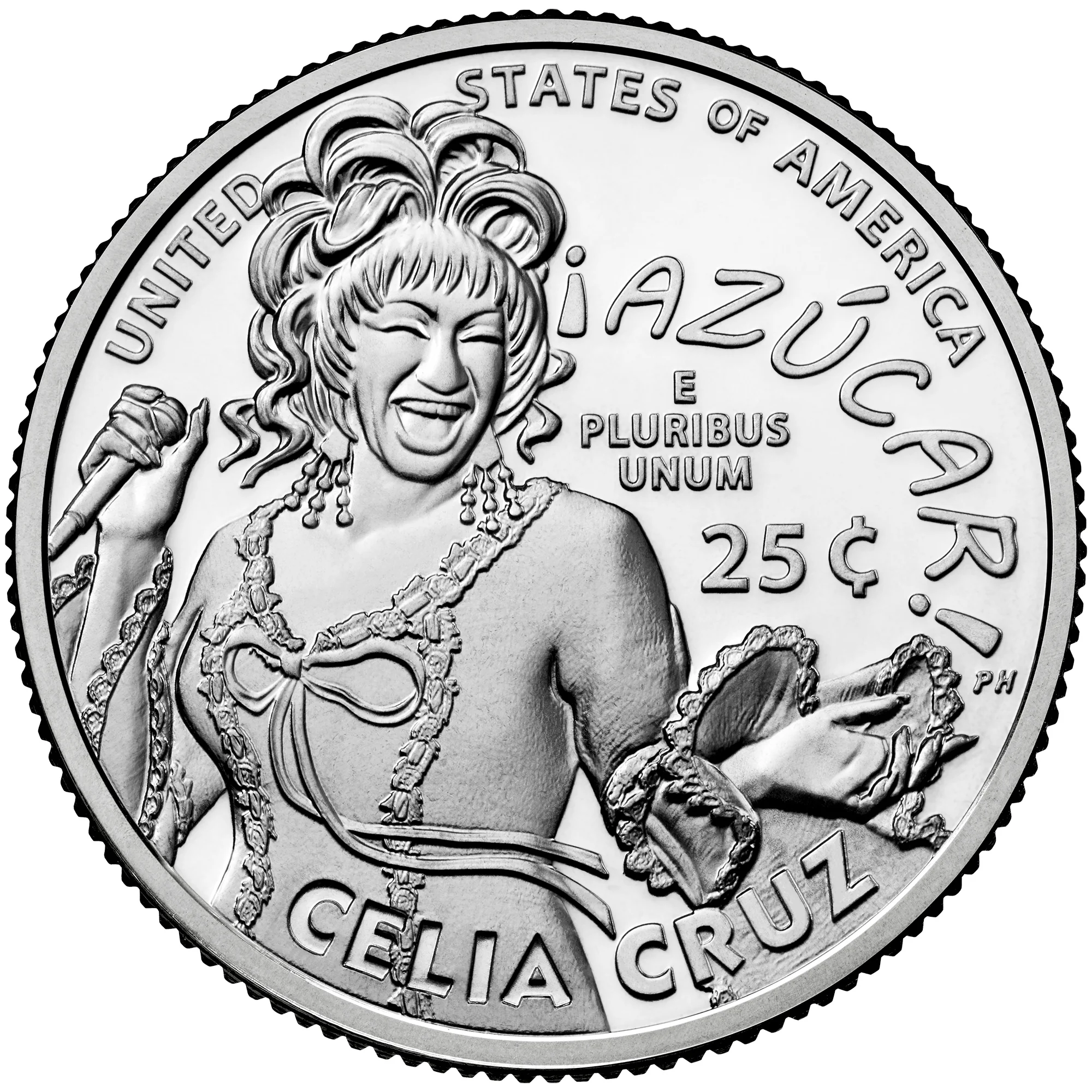 Celia Cruz beams in a rumba dress, her iconic "¡AZÚCAR!" beside her.
