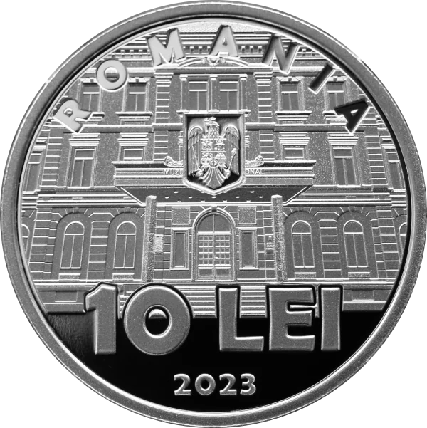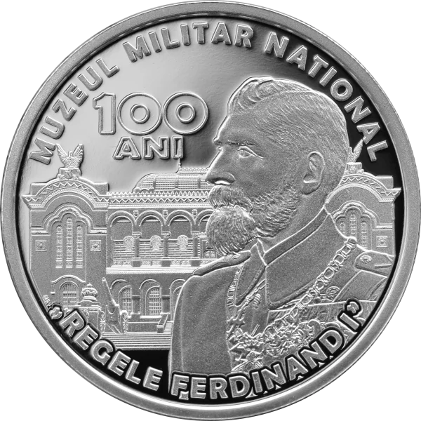 Description: National Military Museum headquarters, portrait of King Ferdinand I, with inscriptions: "NATIONAL MILITARY MUSEUM", "KING FERDINAND I", and "100 YEARS".