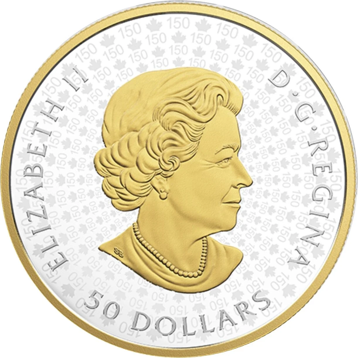 Centre Block with gold trim, engraved fireworks above and the Centennial Flame below.