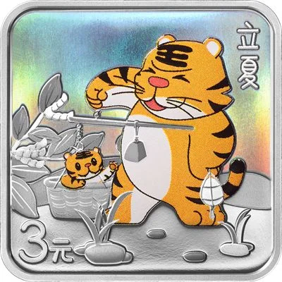 A tiger with Chinese scales, an egg, and broad beans in the background.