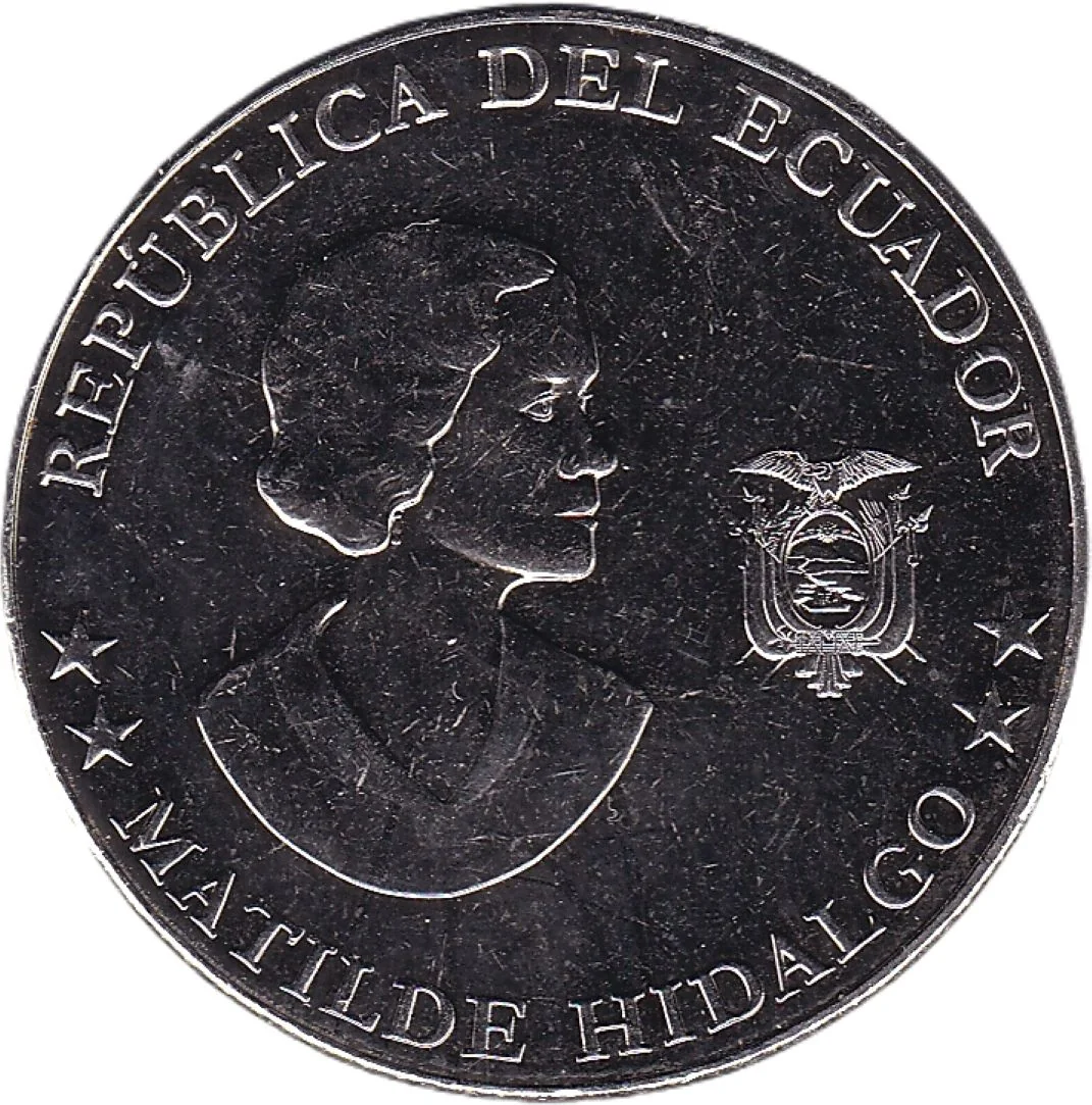 Ecuador's coat of arms, portrait of Dr. Matilde Hidalgo de Procel, first woman to vote in Latin America.