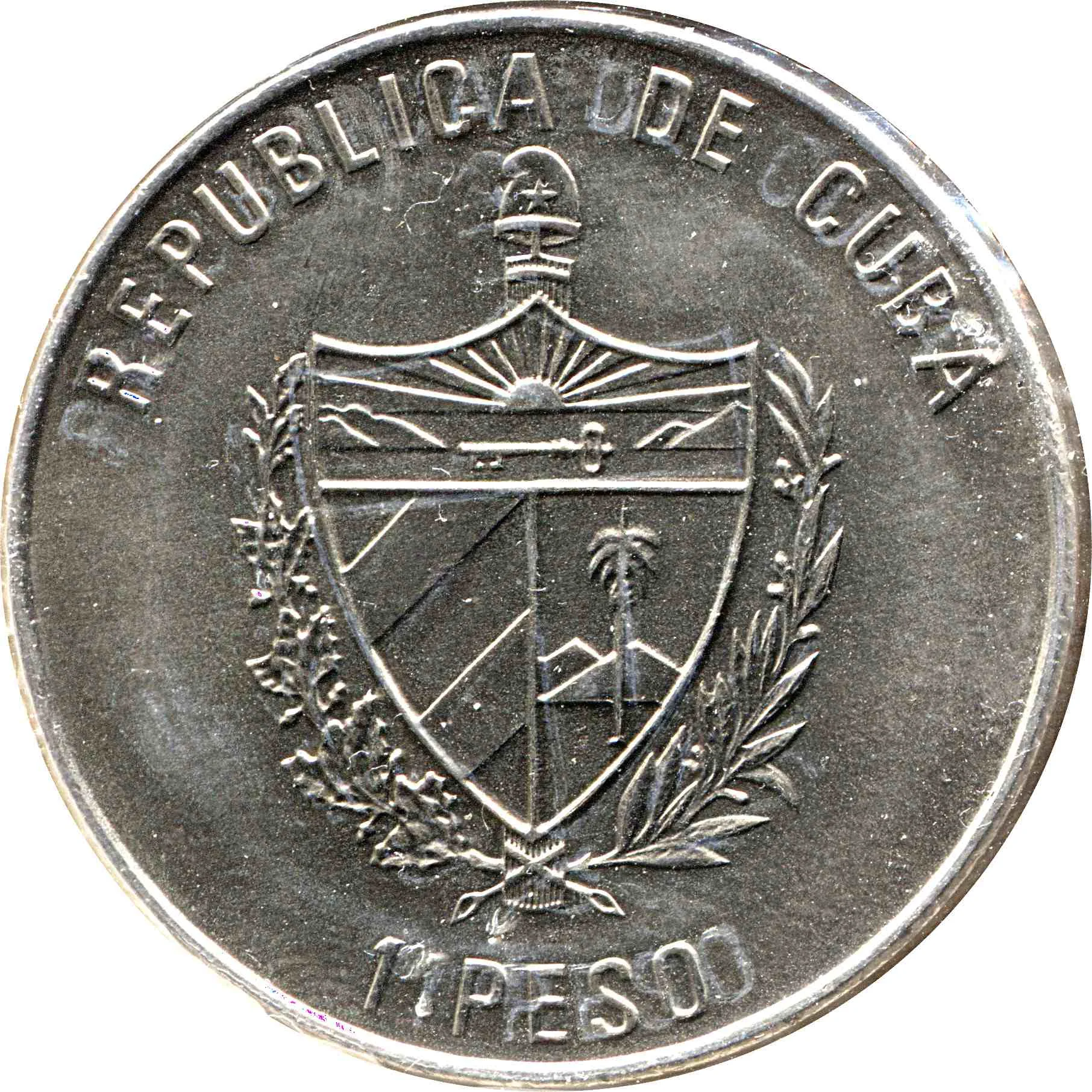 Cuban coat of arms with curved country name above and face value below.