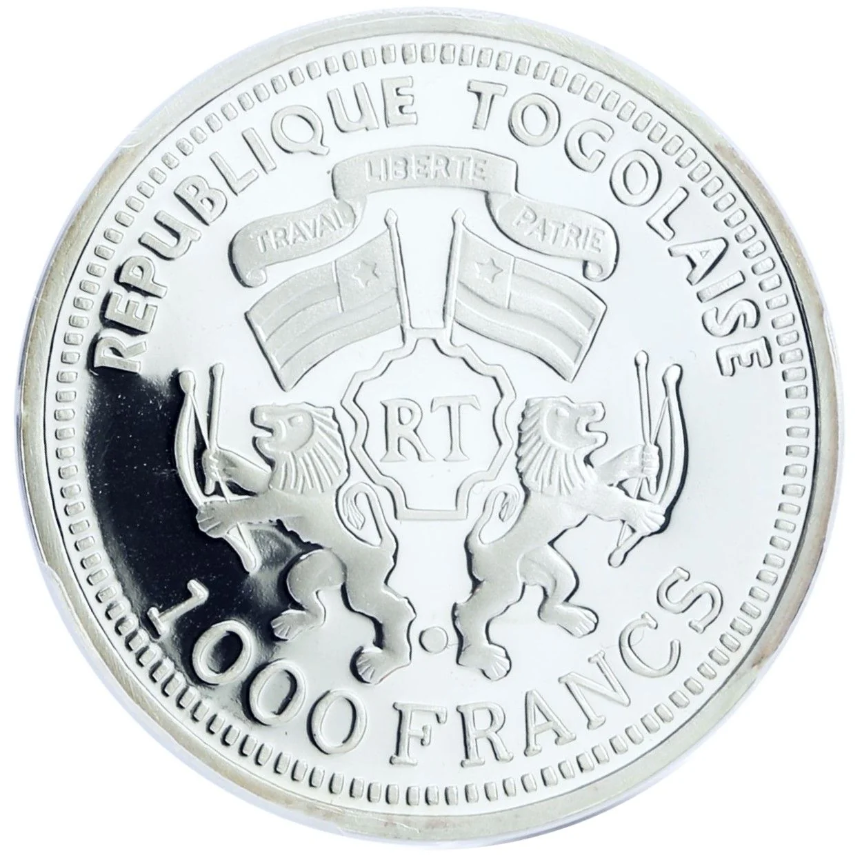 Togolese coat of arms, denomination below.