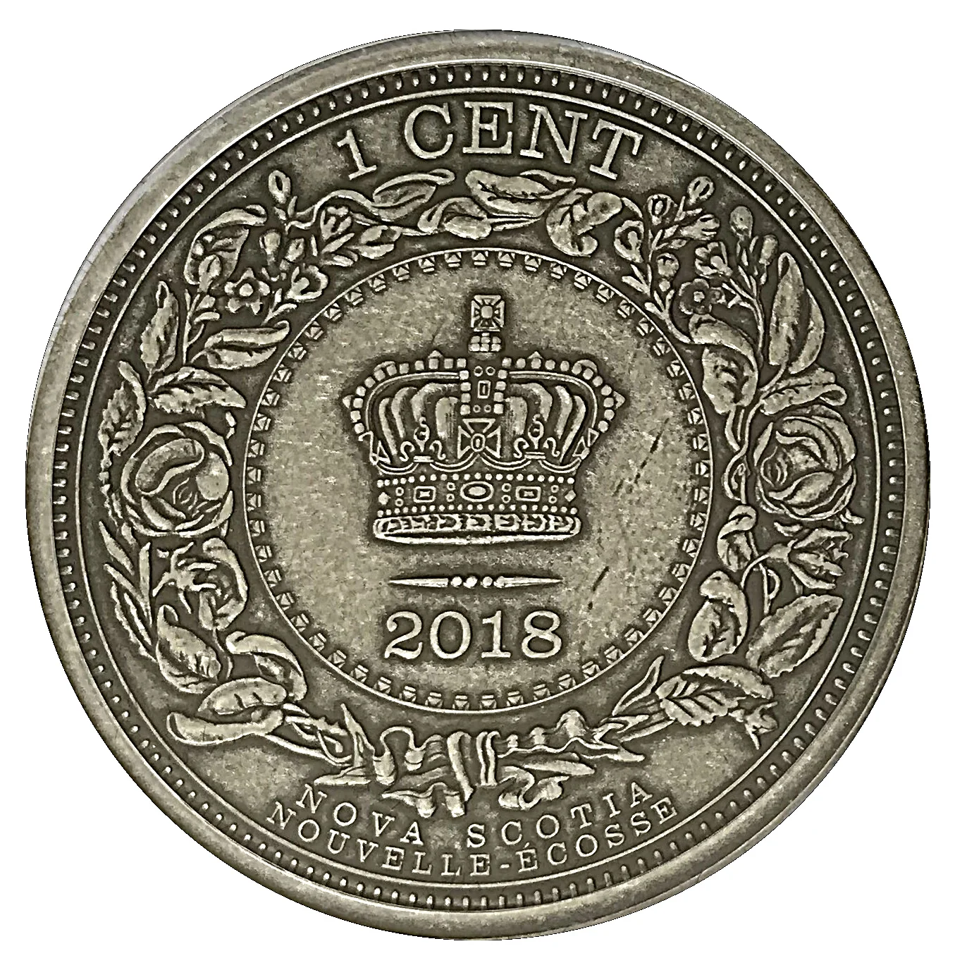 Modeled after the 1861 issue, this cent features the St Edward's Crown with roses and mayflowers.