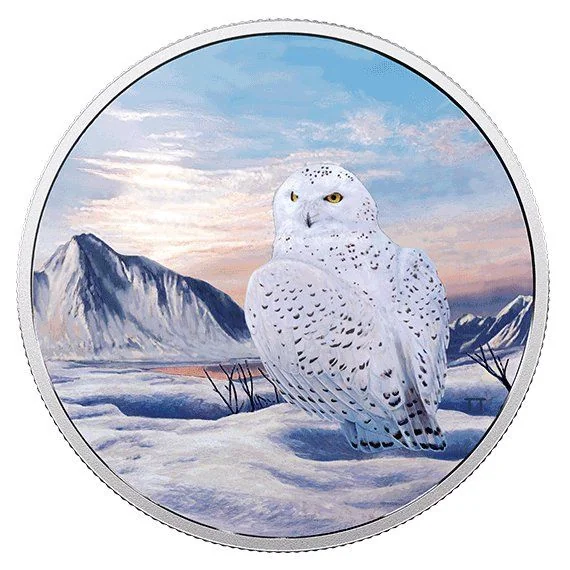 Snowy owl on a snowy tundra, facing left (glows in the dark).
