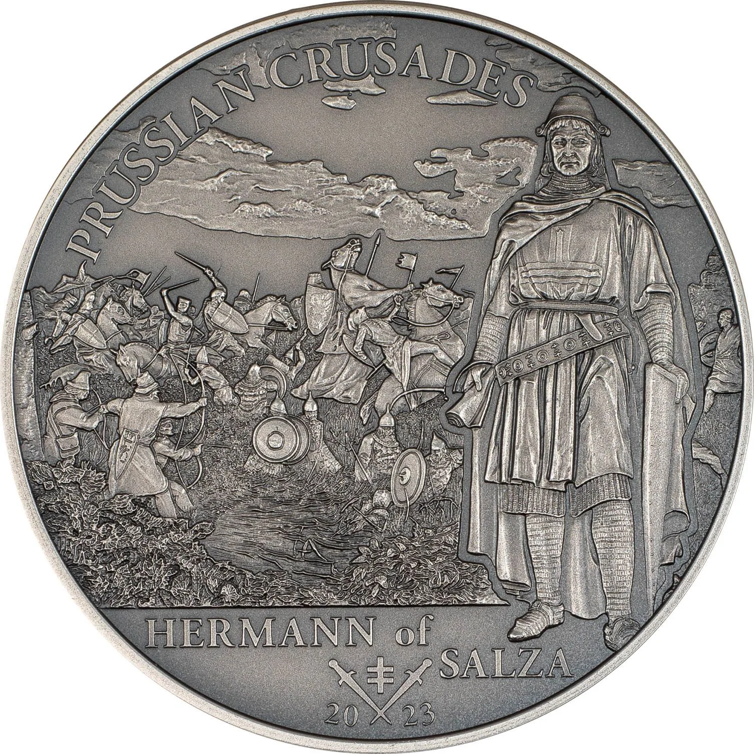 A scene of Prussian capture featuring Hermann of Salza, fourth Grand Master of the Teutonic Knights.