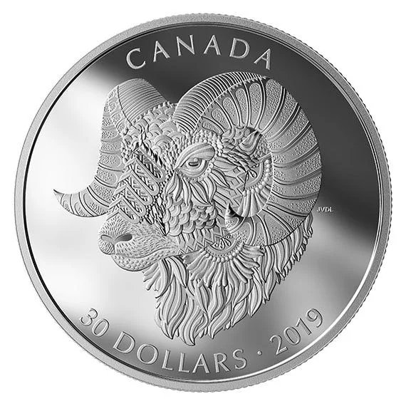 Ornate abstract Bighorn Sheep in profile.
