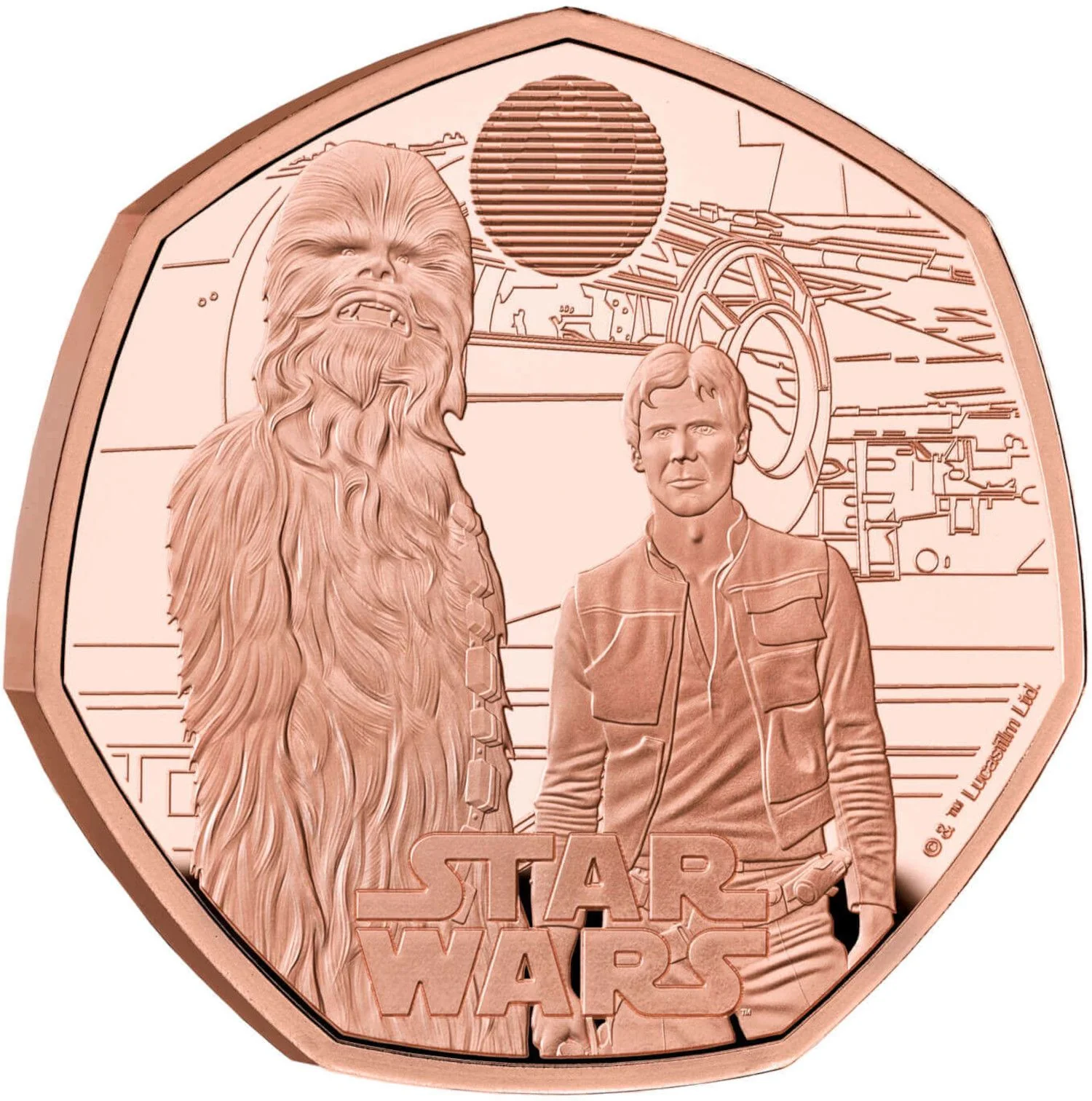 Han Solo and Chewbacca with a hologram effect and lettering.
