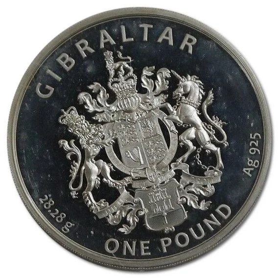 Coat of arms of Gibraltar, legend encircling, denomination beneath.