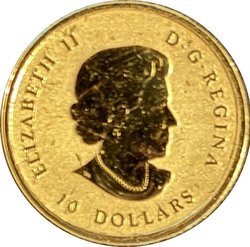 Maple leaf centre, country above, fineness sides, year below.