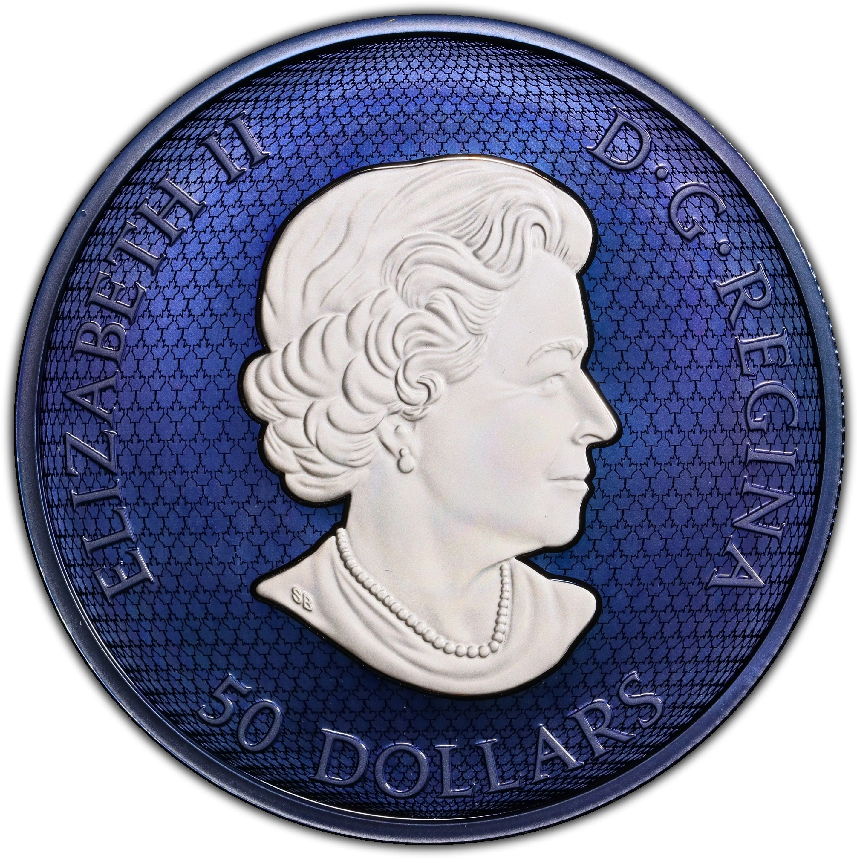 Queen Elizabeth II at 77, facing right, wearing a necklace and earrings against a maple leaf background.
