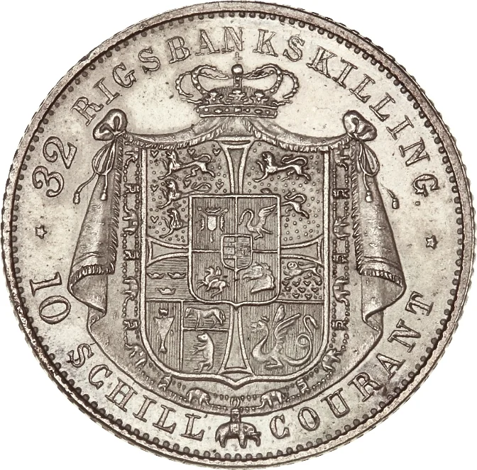 Subdivision: 32 Rigsbankskilling = 10 Schilling courant