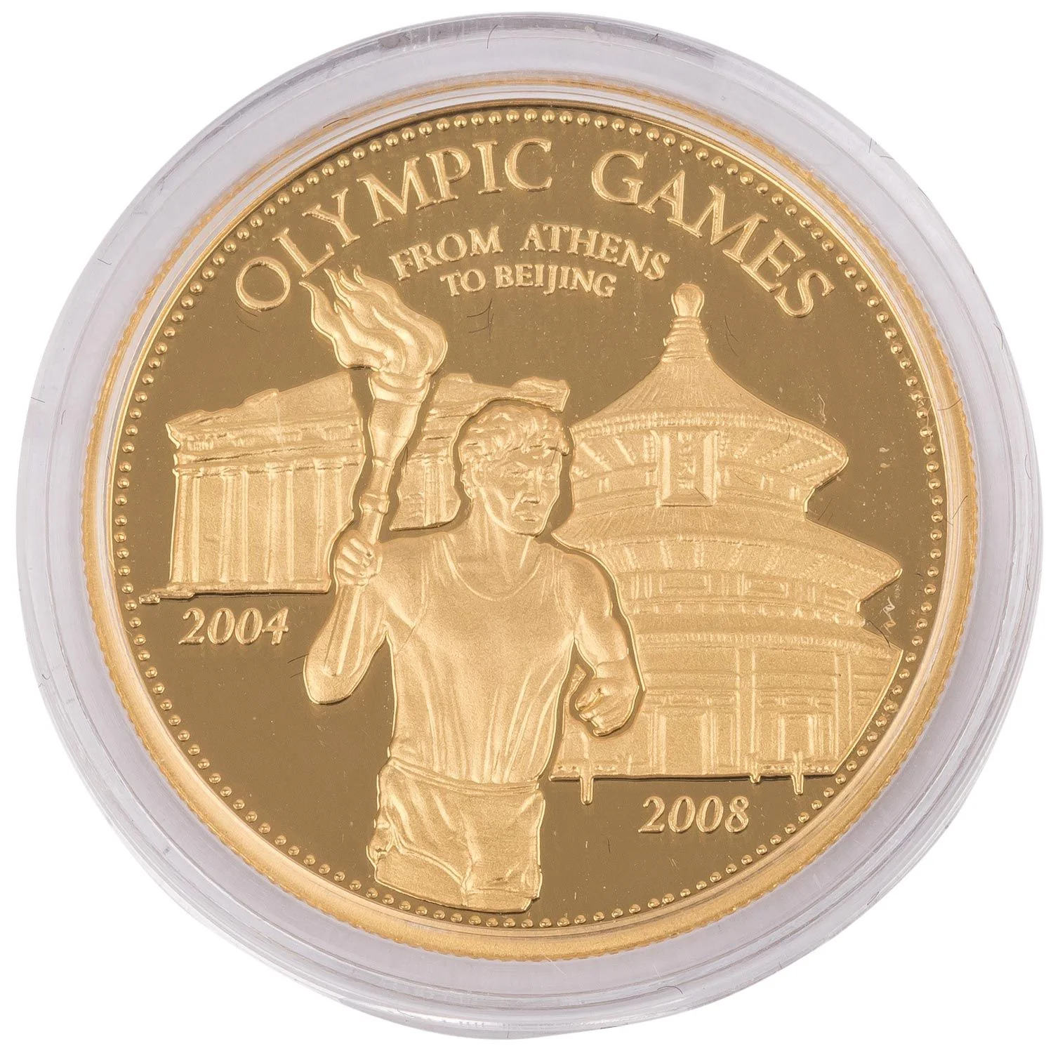 Athens Acropolis and Beijing Pagoda with a torchbearer.