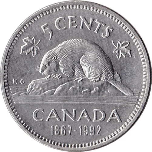 A beaver above "CANADA" and the face value, flanked by maple leaves.